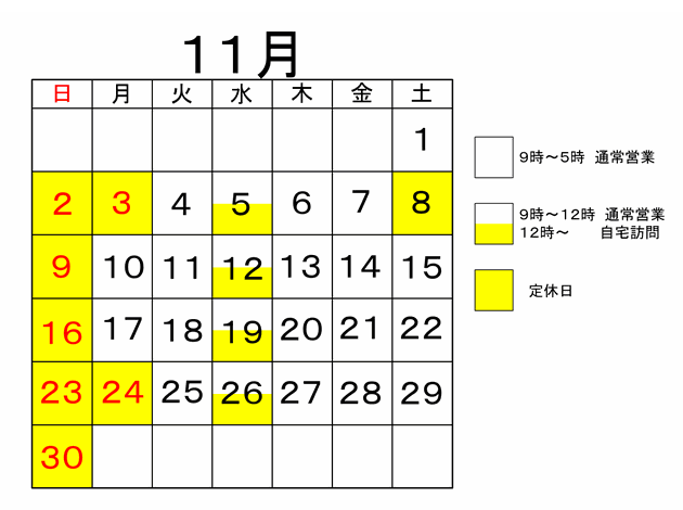 水曜日の午後は自宅訪問時間となります。 午前中は通常営業いたしております。